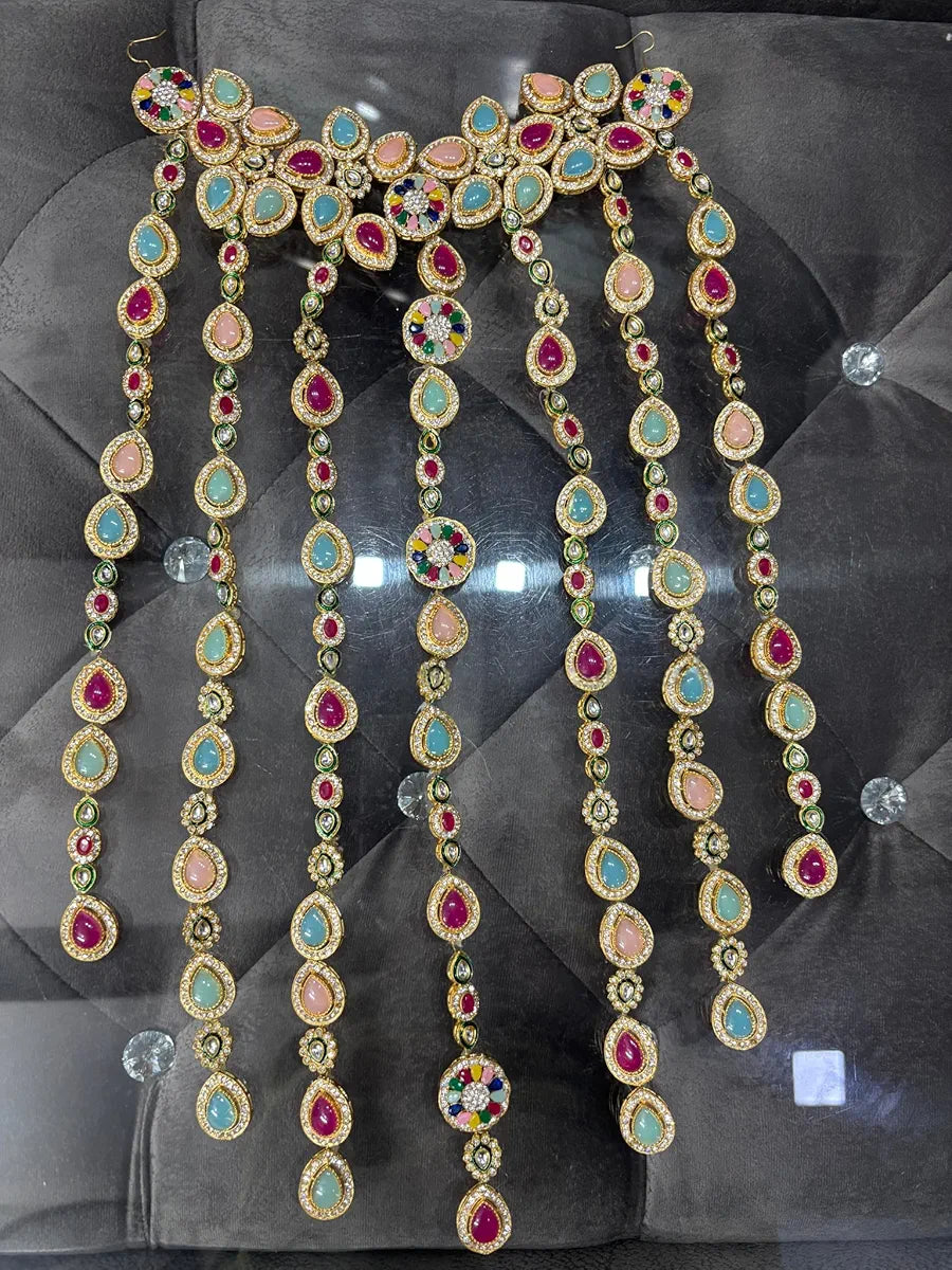 Step into a world of regal charm with our Kundan Embellished Hair Accessory, a masterpiece of tradition and artistry.