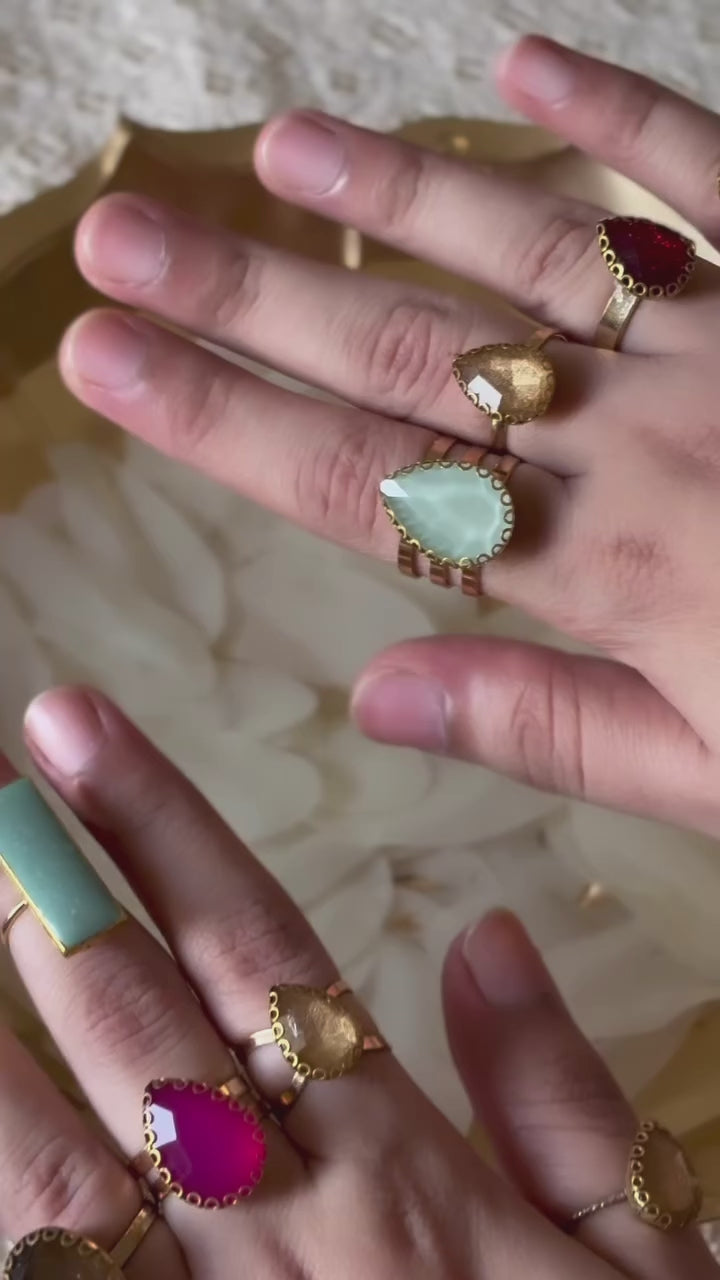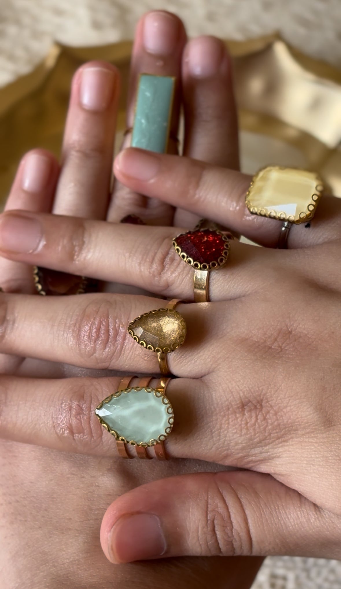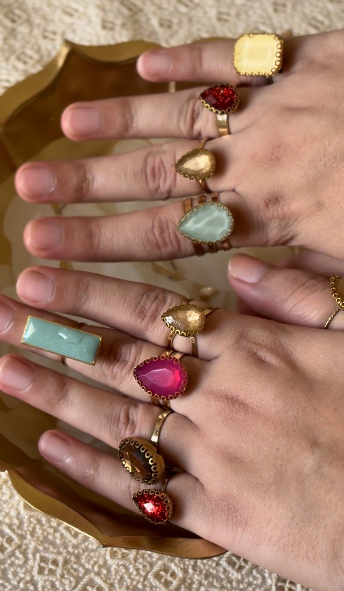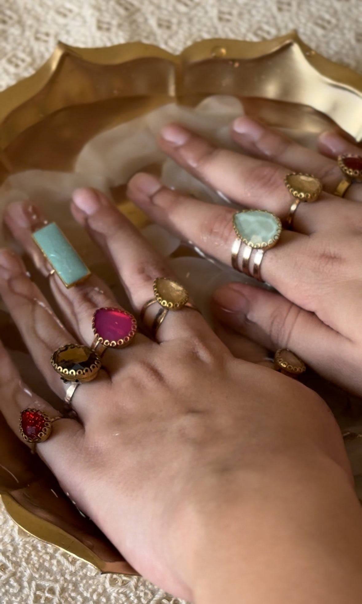 Each ring is handcrafted with premium-quality stones in stunning shades, set in a delicate gold-finished frame that brings out their natural brilliance. With an adjustable fit, these rings are perfectly designed to suit every finger comfortably, letting you style all 10 fingers with effortless elegance.