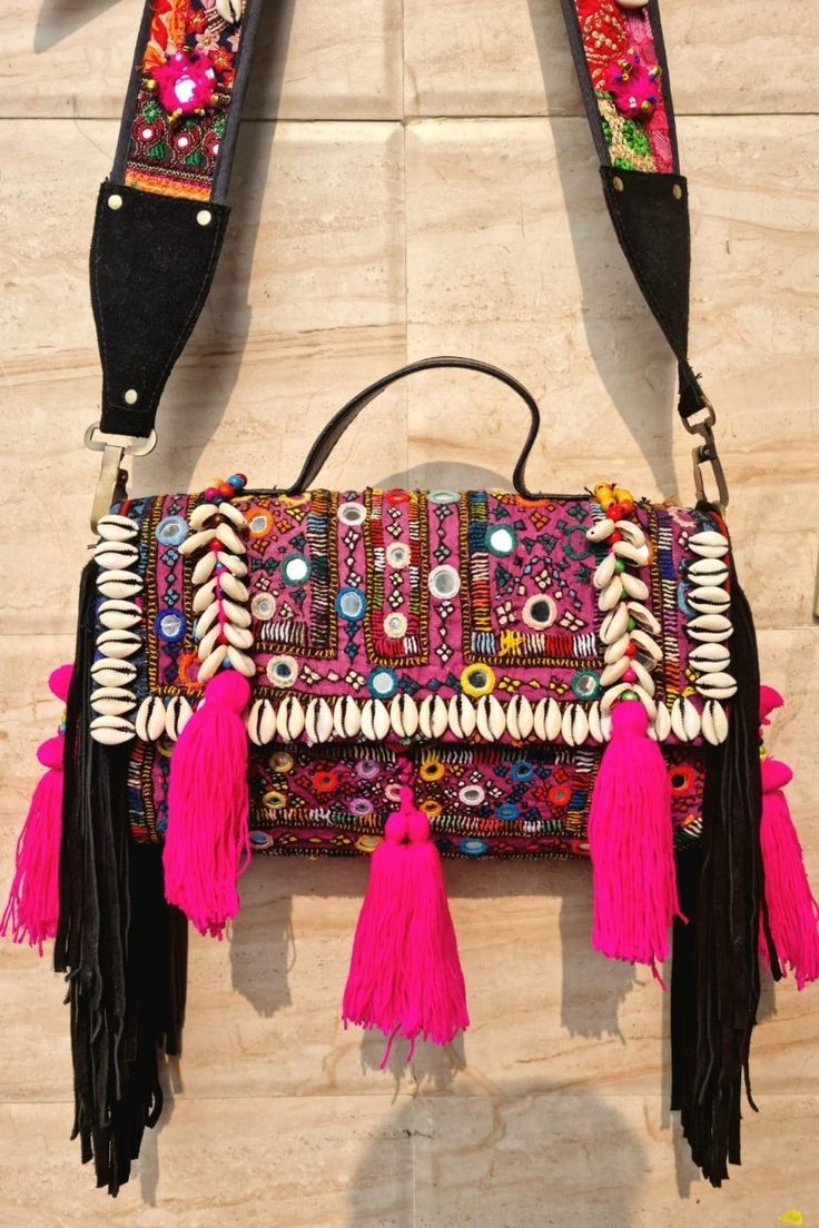 All the embroidered fabric are handworked by women for decades. Hence the vintage flaw is taken by a lot of pride. The imperfections in the bag is the result of sourcing these hand embroidered fabric. Please note that you might find some old mirrors, flawed fabrics and stitches.