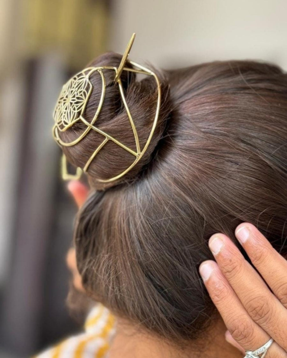 This Bohemian Hair cage Bun is perfect for creating a bold and unique bun hairstyle. Made with high-quality materials, it provides a secure hold for all hair types. Effortlessly elevate your look and stand out from the rest with this one-of-a-kind hair accessory.