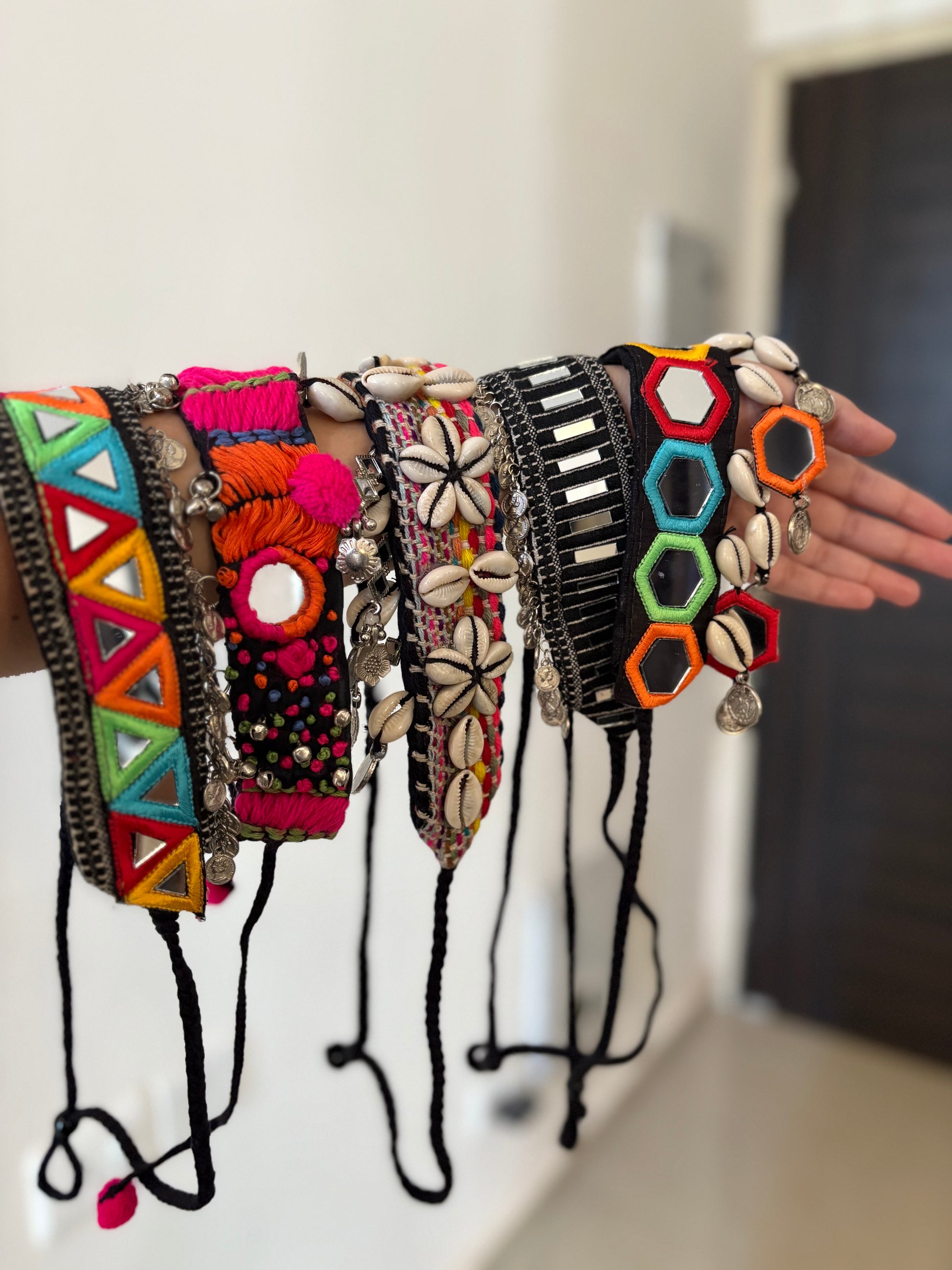 1. Embroidery: The choker is often adorned with colorful embroidery, showcasing intricate patterns and vibrant threads. The embroidery is usually done by hand, reflecting the rich cultural heritage and craftsmanship of the Banjara people.