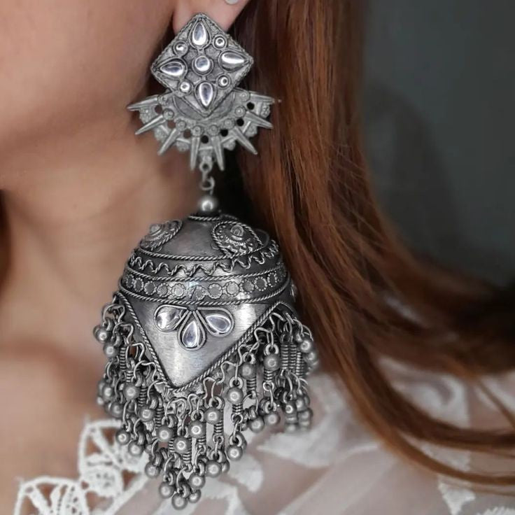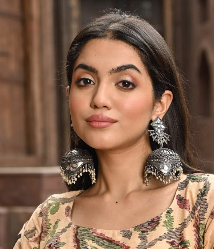 Introducing our stunning Ghumar Earrings, a perfect blend of traditional elegance and contemporary style. These exquisite earrings are intricately handcrafted, drawing inspiration from the rich cultural heritage of Indian craftsmanship. Designed to make a statement, each pair features a mesmerizing dance of colors and textures, encapsulating the spirit of celebration and festivity. Whether you're dressing up for a special occasion or adding a touch of glam to your everyday look, the Ghumar Earrings will elevate your ensemble to new heights of sophistication and charm.