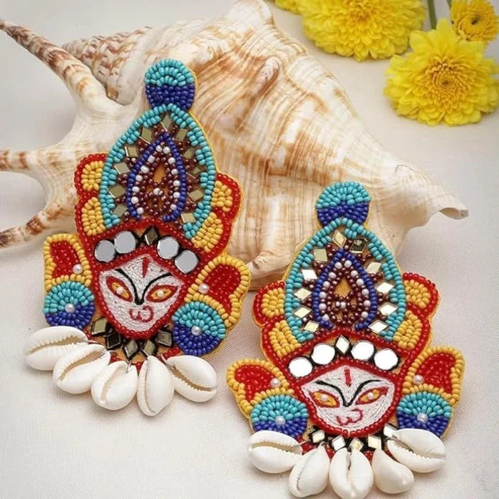 Elevate your accessory game with our Durga Maa Hand Beaded Premium Earrings and embrace a touch of divine elegance!