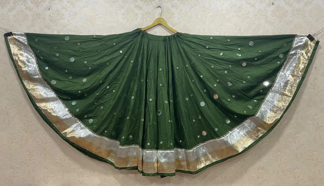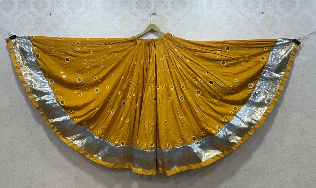 This chaniya is perfect for Navratri nights, sangeet ceremonies, or for bridesmaids looking for understated elegance with a traditional soul. It pairs beautifully with contrast or matching blouses for a complete festive look.