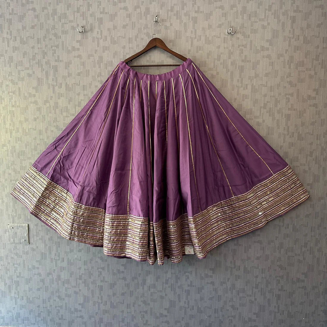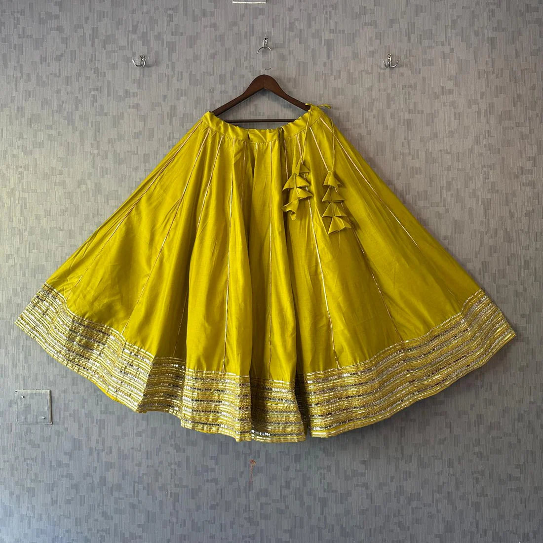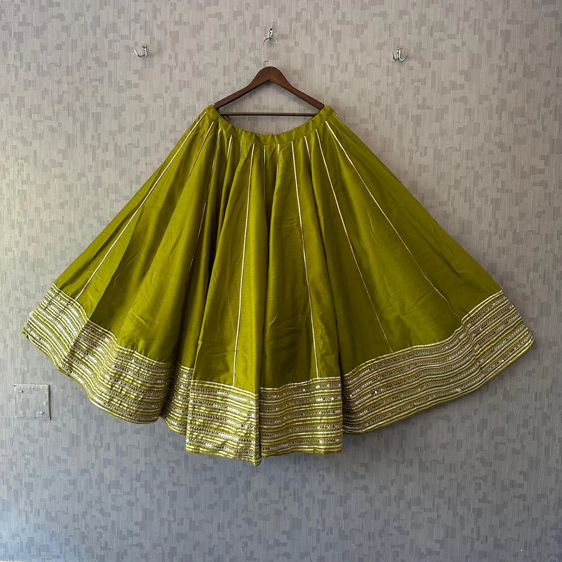 This chaniya is perfect for Navratri nights, sangeet ceremonies, or for bridesmaids looking for understated elegance with a traditional soul. It pairs beautifully with contrast or matching blouses for a complete festive look.