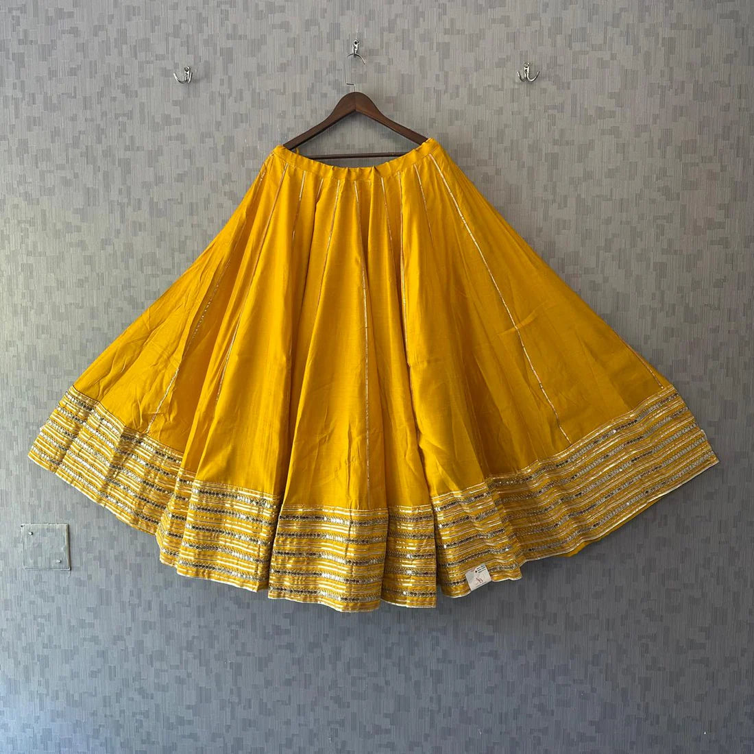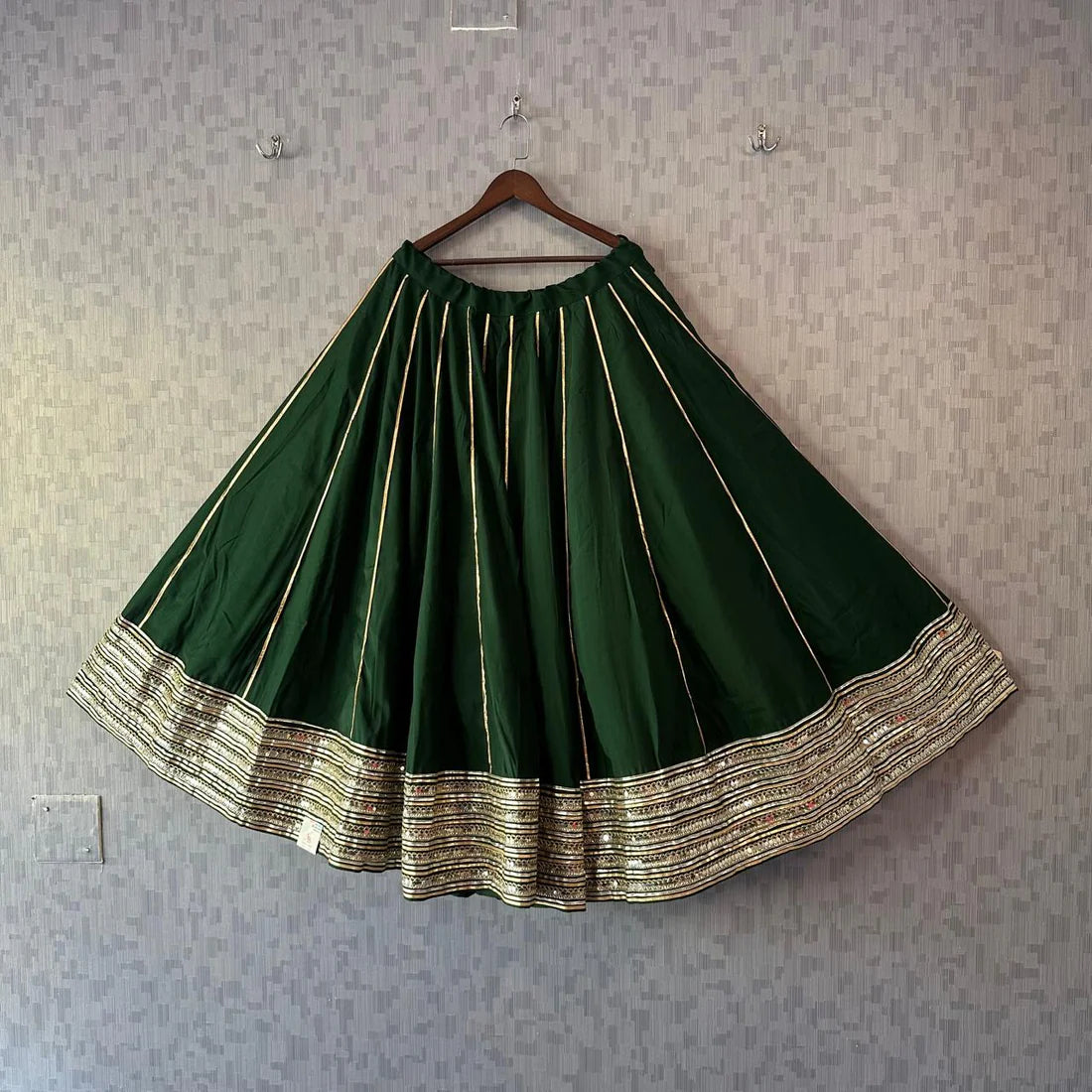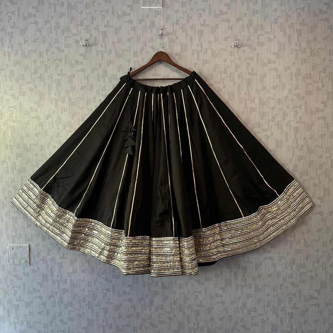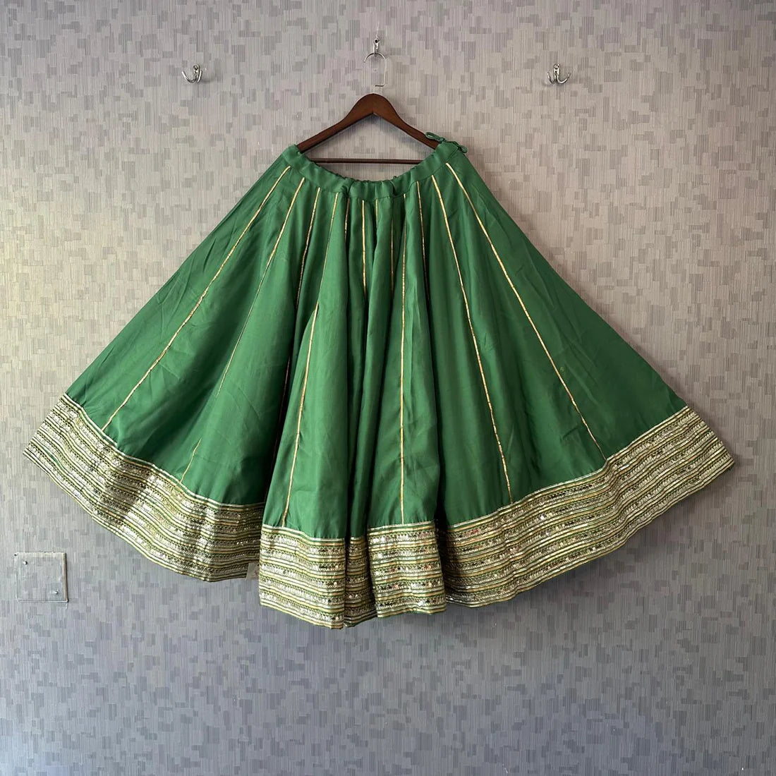 This chaniya is perfect for Navratri nights, sangeet ceremonies, or for bridesmaids looking for understated elegance with a traditional soul. It pairs beautifully with contrast or matching blouses for a complete festive look.