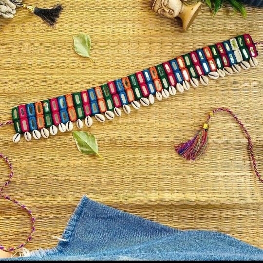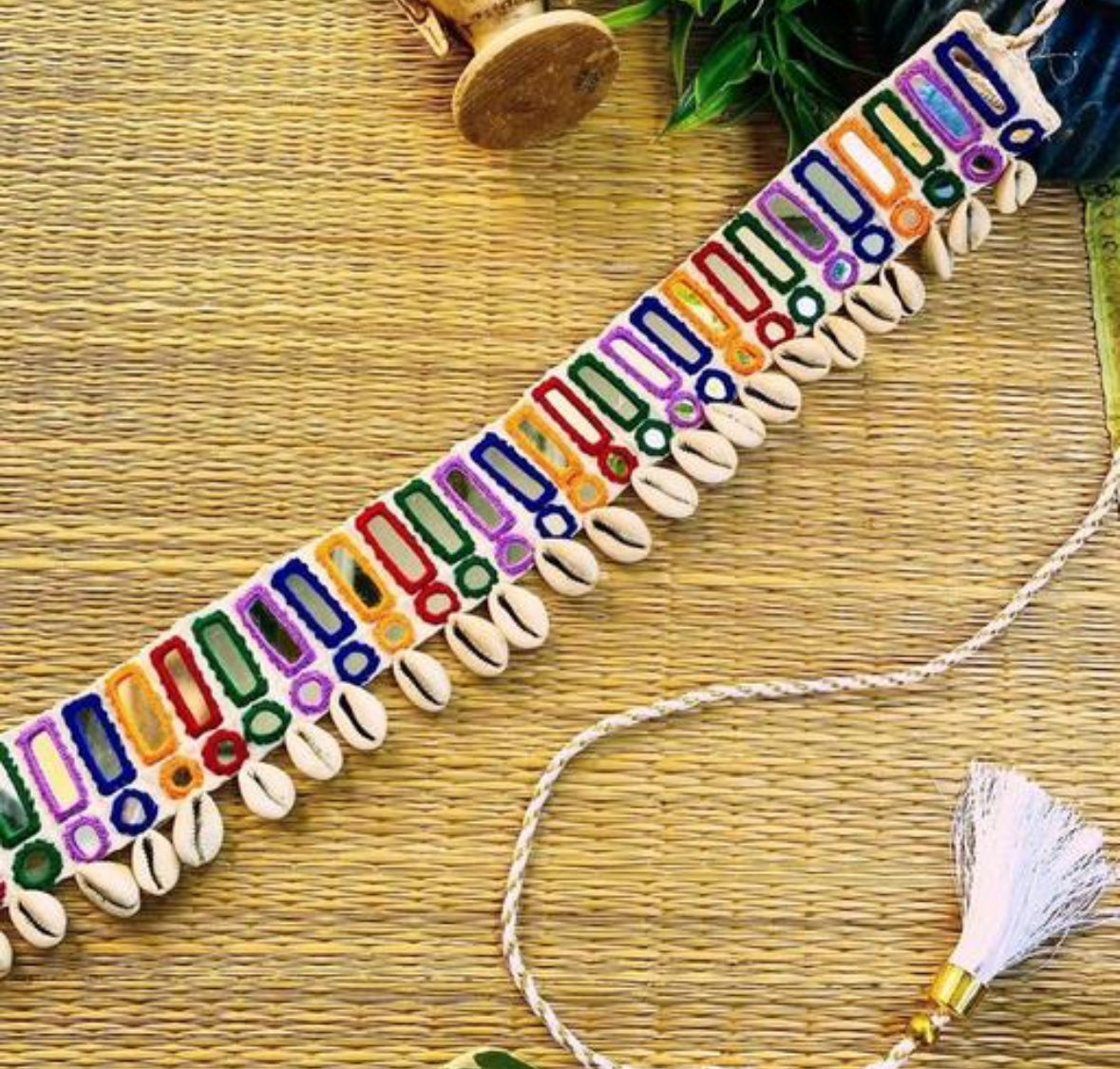 Graceful like a peacock and melodious like her anklets, Morni Jhanjar is a belt for the woman who moves with rhythm. The belt features thread tassels in vibrant colors, oxidized charms, and small ghungroos that create music with every step. It’s the perfect blend of folk charm and bohemian elegance, ideal for both traditional chaniya choli or Indo-fusion silhouettes.