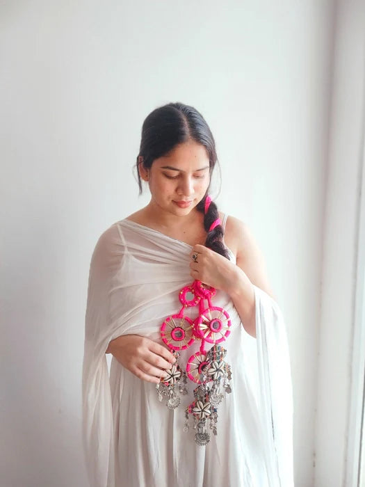 Introducing the Noor Parandi, a beautiful and versatile hair accessory that is perfect for adding a touch of elegance to any hairstyle. Crafted with care, this stunning parandi combines traditional craftsmanship with modern chic, making it a must-have addition to your hair styling essentials. Whether you're dressing up for a festive occasion or simply want to elevate your everyday look, the Hnji Parandi seamlessly enhances your beauty and showcases your unique style. Embrace the cultural heritage while making a fashion statement!