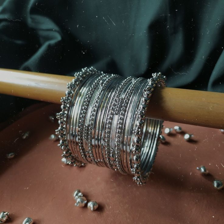 These Engraved Oxidised Bangles add a touch of elegance and style to any outfit. The oxidised surface gives a unique and trendy look, while the engraving adds a personal touch. Made with quality materials, these bangles are a must-have accessory for any fashion-forward individual.