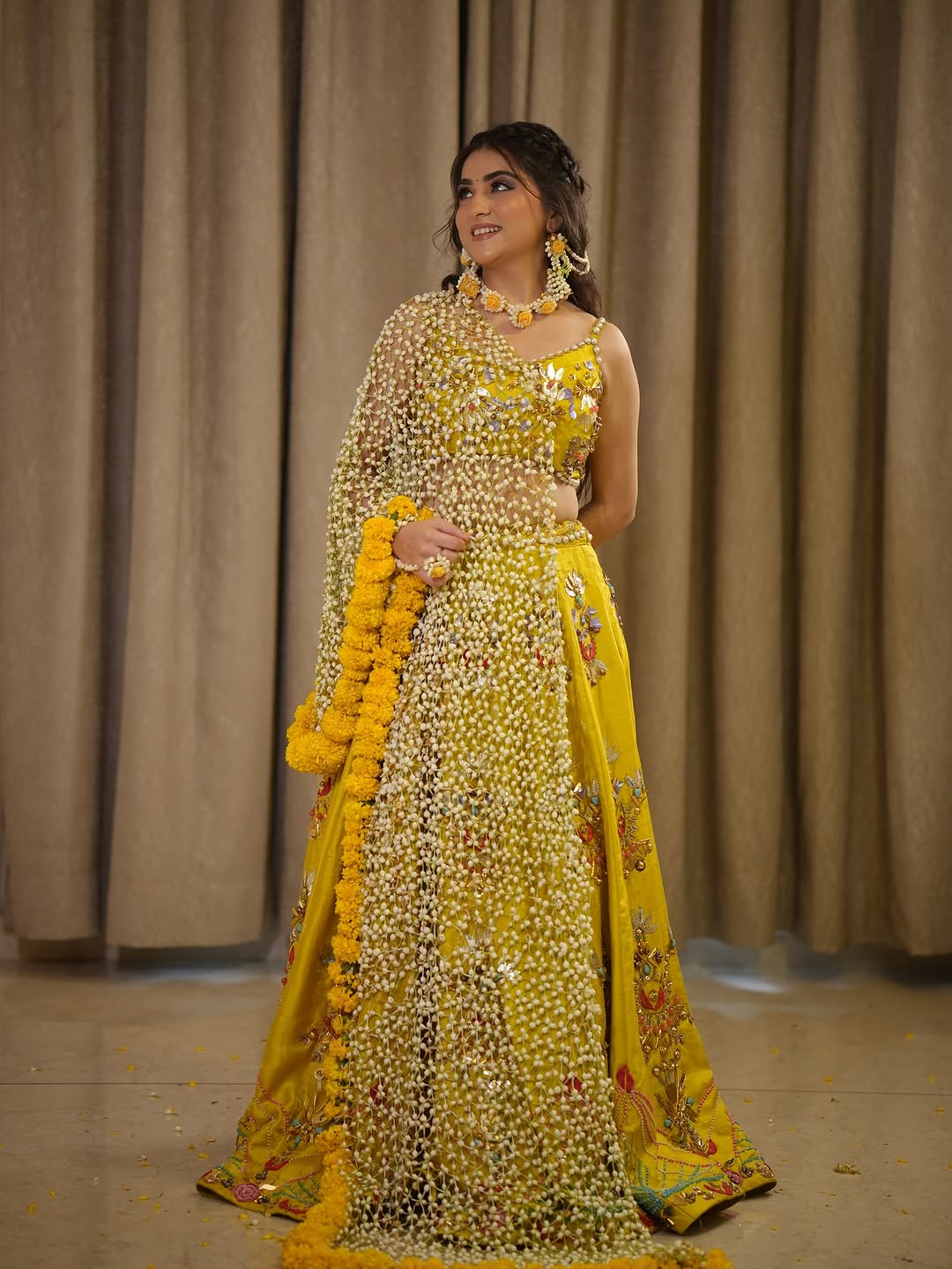 Indulge in the ultimate bridal luxury with our handcrafted Phoolon Ka Dupatta, made using real, imported flowers that never die. Designed especially for brides and bridesmaids, this floral dupatta is a perfect choice for haldi ceremony, mehendi, bridal entry, or pre-wedding photoshoots.