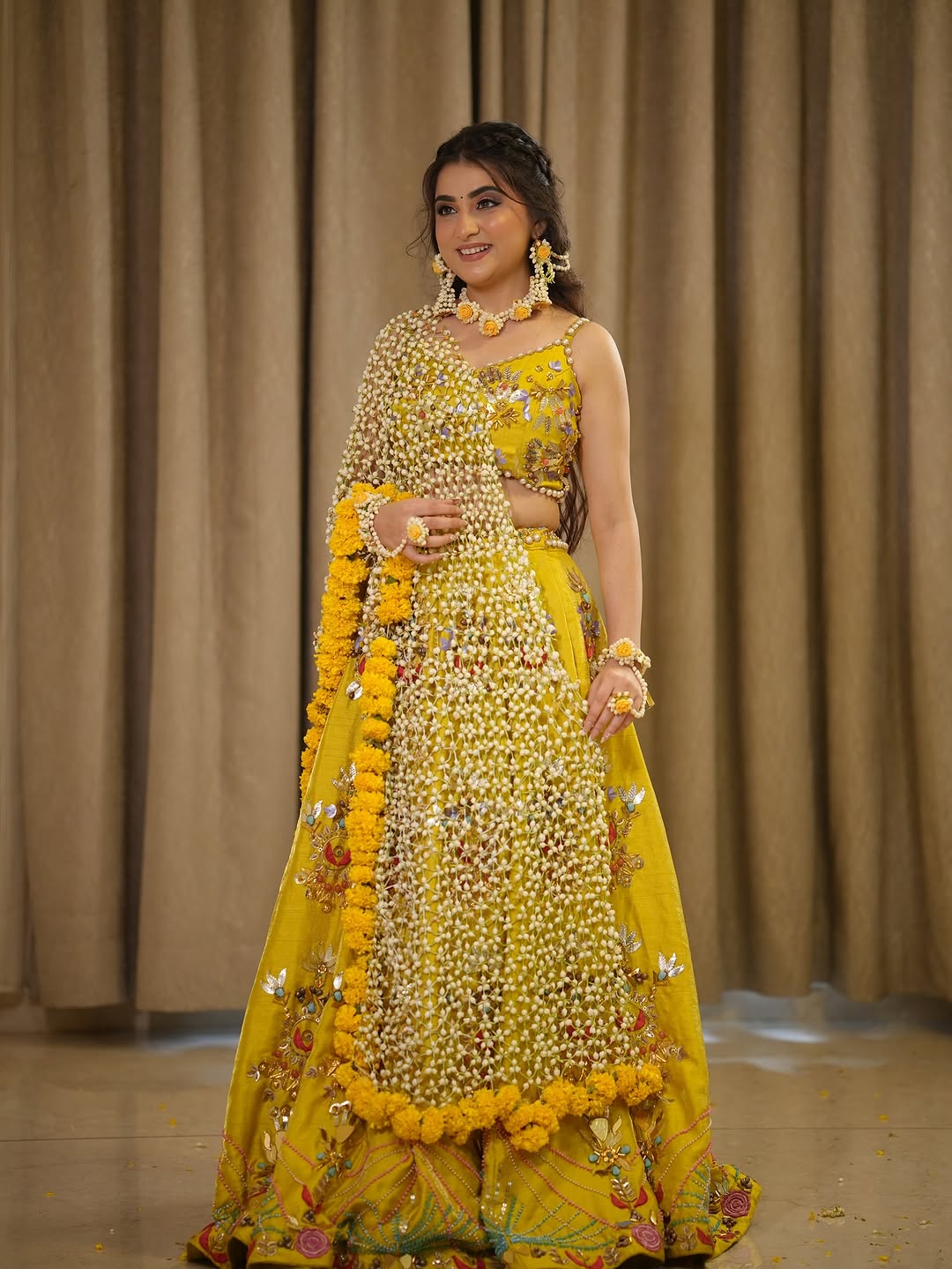 - Ideal for haldi, mehendi, bridal shoot, phoolon ki chaadar