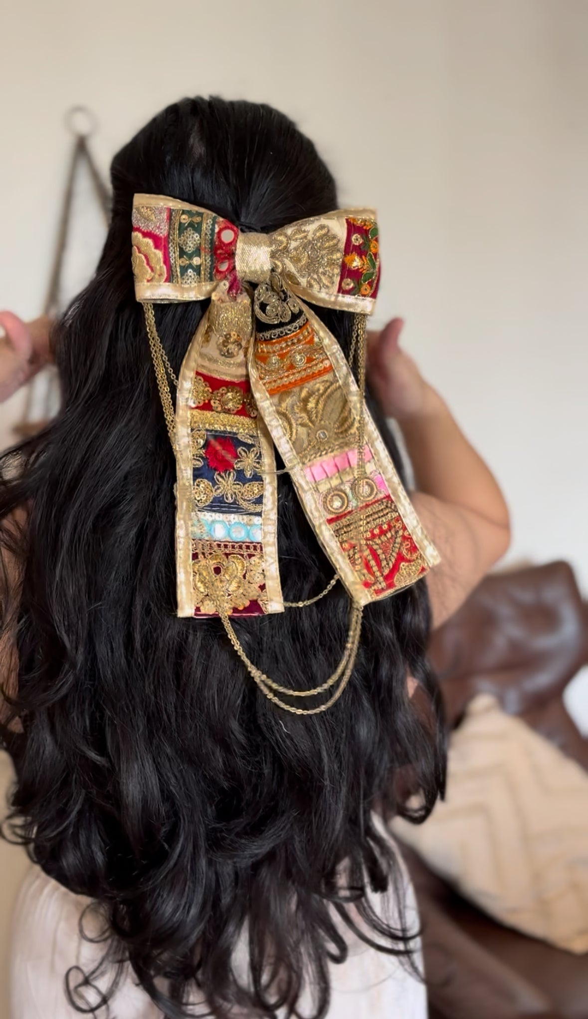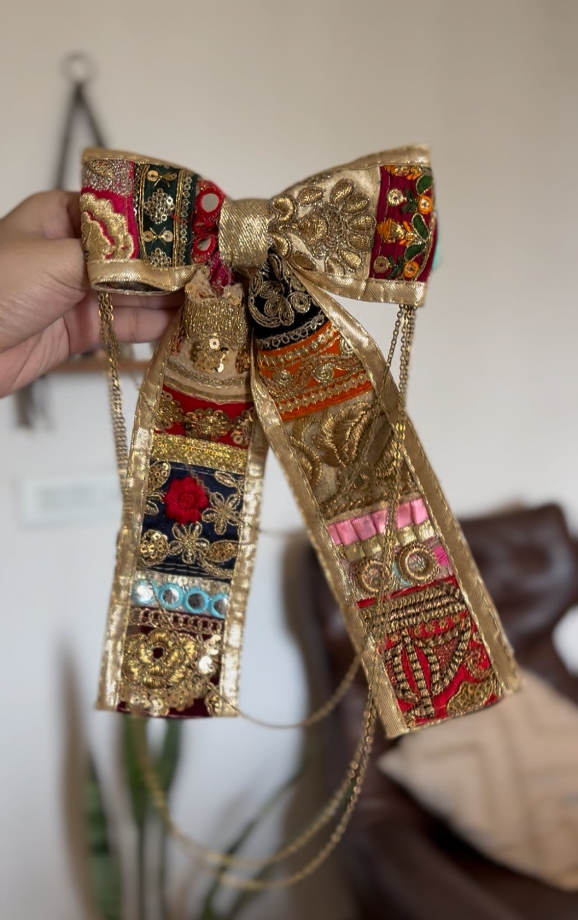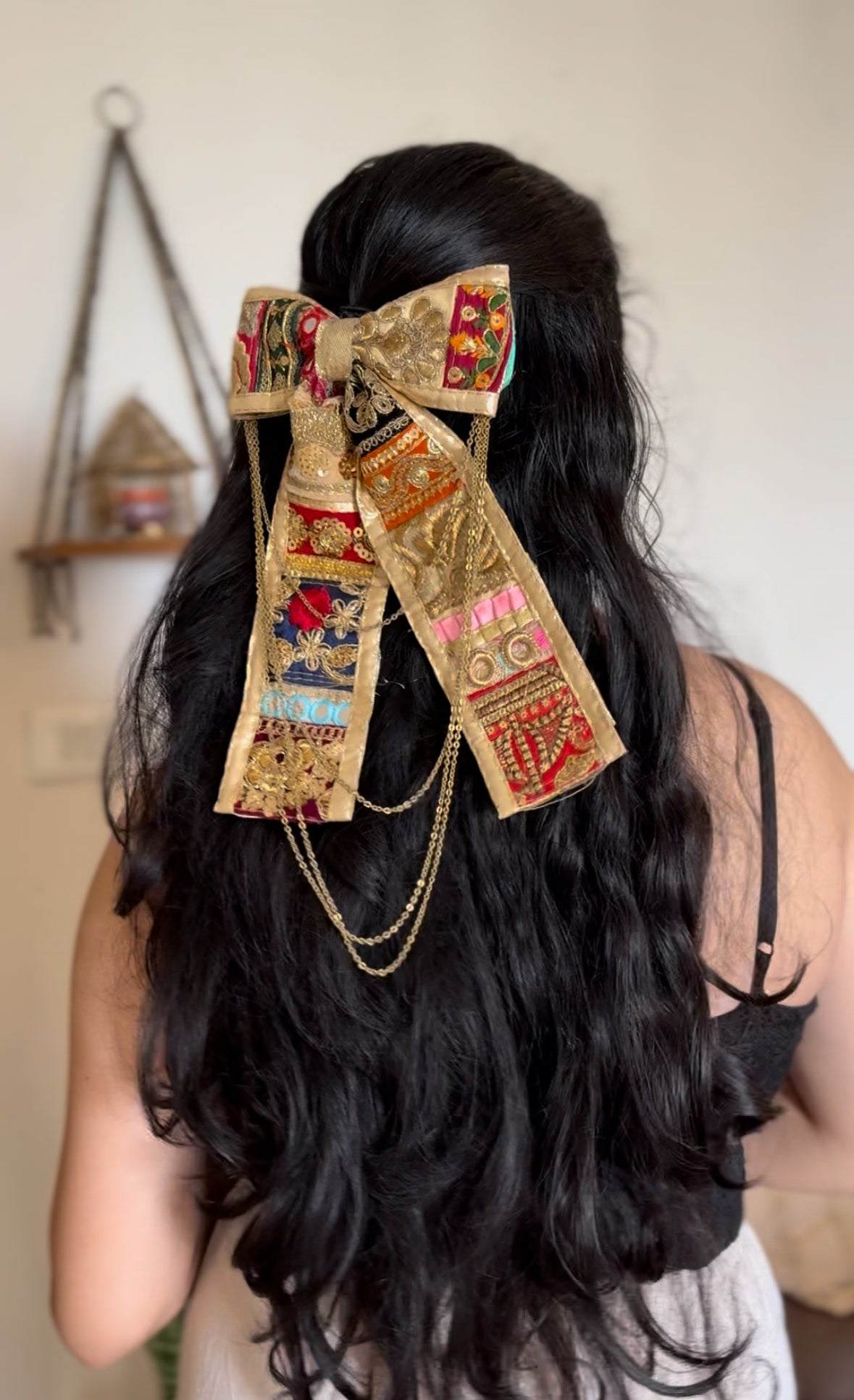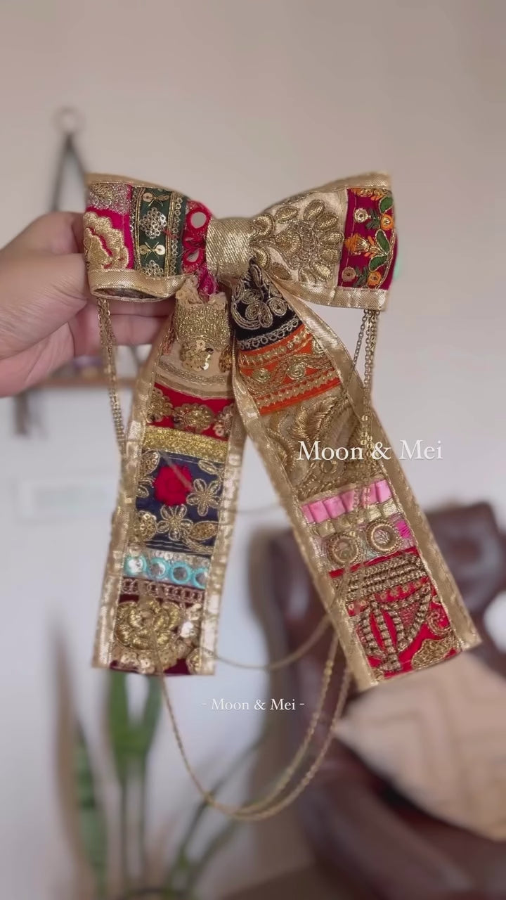 Celebrate the vibrant spirit of Navratri with our “Raas Rang Bow”, a festive-ready hair accessory designed to elevate your traditional look. Handcrafted with love, this bow brings a burst of color, charm, and cultural elegance—perfect for dandiya nights, garba twirls, and all nine nights of celebration.