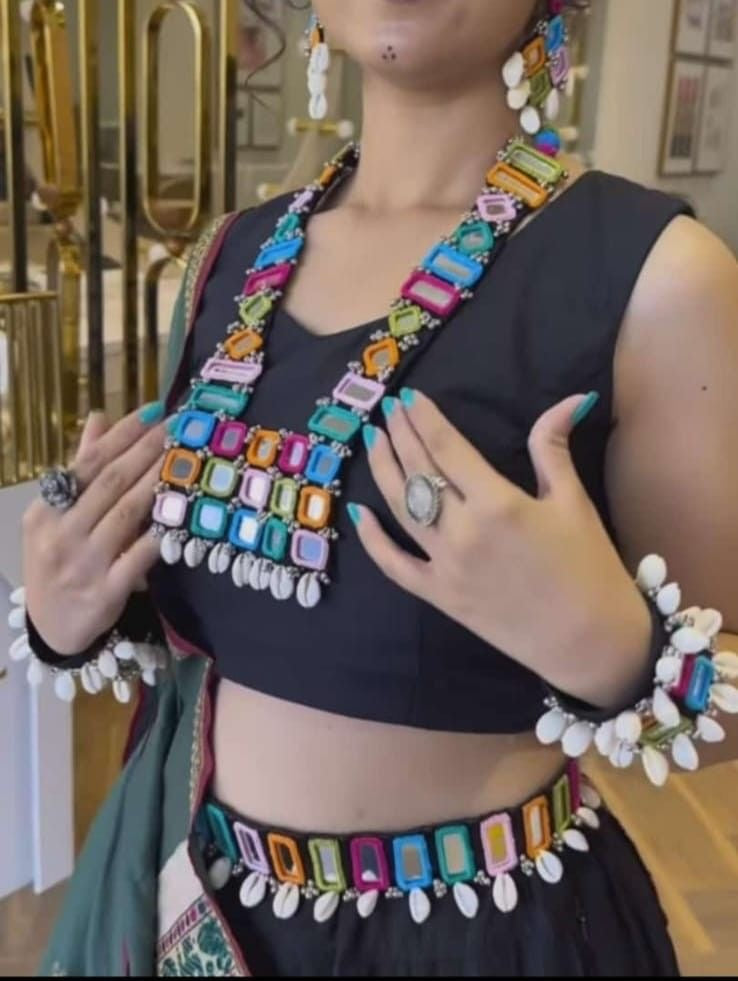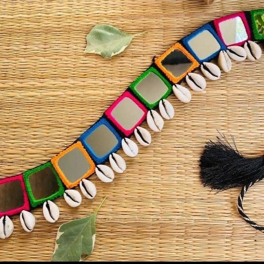 This stunning kamarbandh is fit for the queen of Raas. A blend of mirror work, bright threads, and playful tassels makes it a festive favorite.