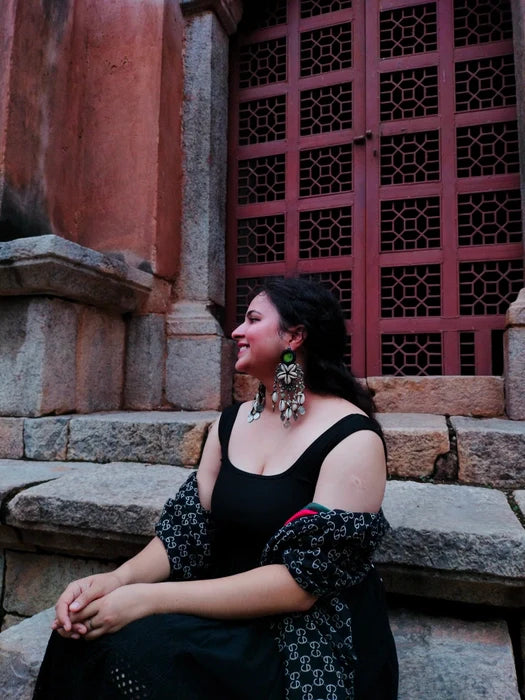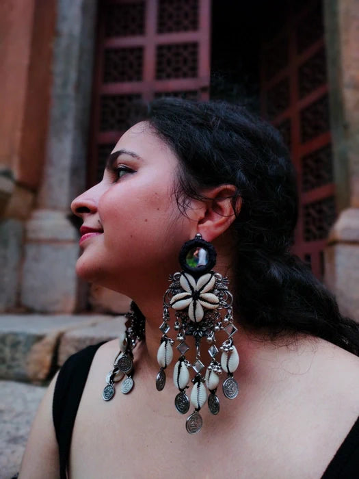 Elevate your style with our stunning oxidized earrings, adorned with intricate embroidery, reflective mirrors, and natural shells. These one-of-a-kind pieces blend vintage charm with modern sophistication, making them the perfect accessory for any occasion. Crafted with exceptional attention to detail, they promise to enhance your outfit and make a bold statement. Don't miss out on adding this unique blend of artistry and elegance to your jewelry collection. Shop now and transform your look with these captivating earrings!