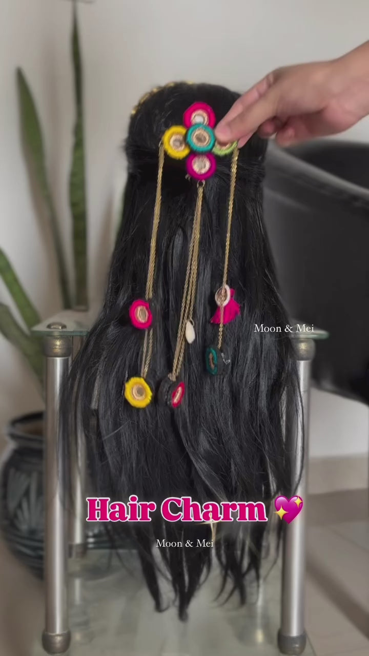 - Crescent-shaped clip with traditional motifs & mirror accents