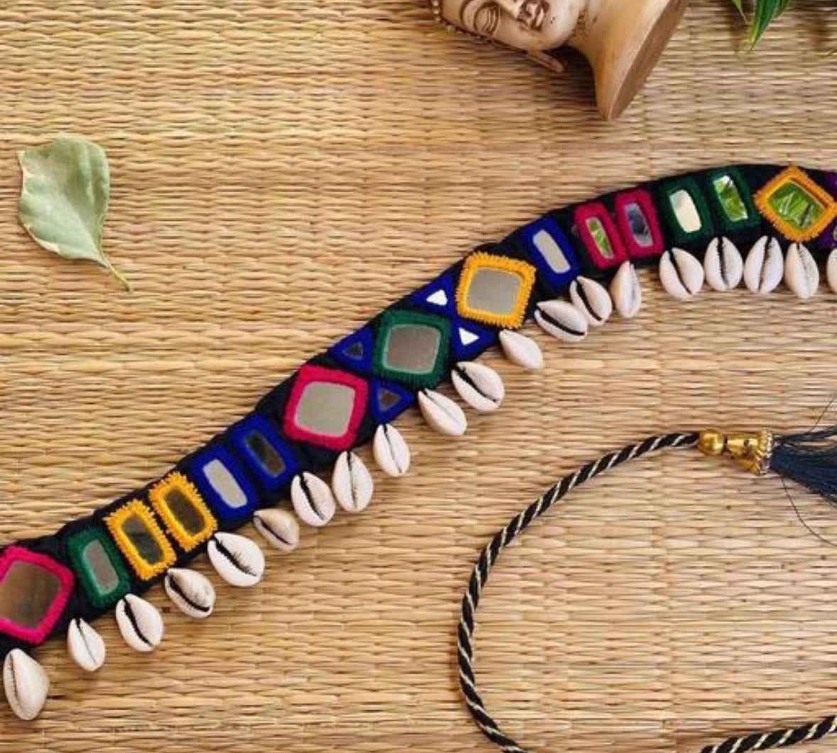 Named after the twinkling stars that dance above the Garba ground, Sitara Baandh is a belt made for movement, shimmer, and celebration. With metallic chains, reflective discs, and a softly cascading silhouette, it wraps around the waist like a celestial river. Designed to complement both bold and minimal outfits, this belt turns your waist into a galaxy of style and tradition.