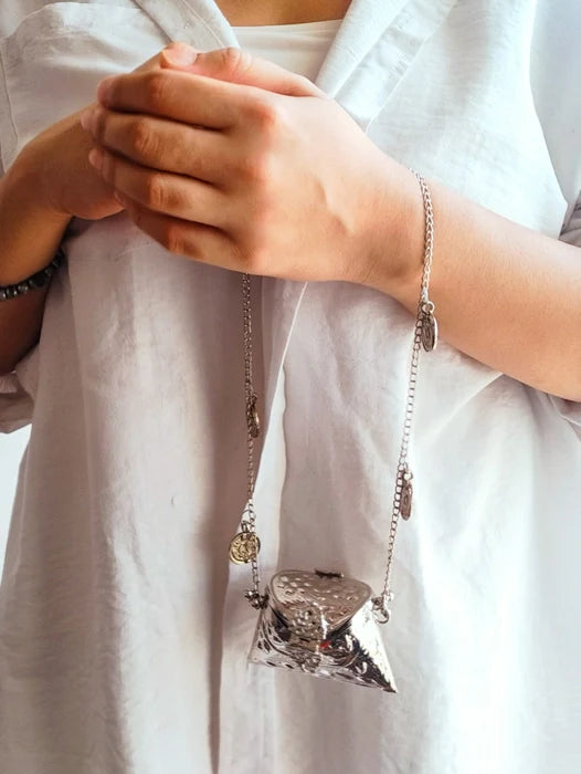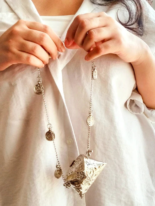 Introducing the Mini Statement Batuaa in stunning silver! This chic and contemporary coin purse is designed for the modern individual who values both style and functionality. Perfectly sized for your essentials, it offers a sophisticated way to organize your coins, cards, and small necessities. Crafted with high-quality materials, this mini batuaa is not only durable but also exudes elegance, making it a must-have accessory for any outfit.